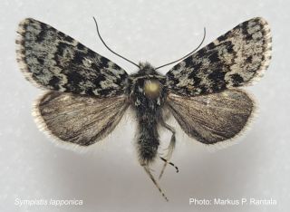 Sympistis lapponica is a moth of the family Noctuidae. It is found in Fennoscandia and northern Russia, Asia and northern North America. The wingspan is 23 -26 mm. The forewings are grey with black markings and chequered fringes. The hindwings are grey with a vague white line and white fringes. In Finland adults are on wings usually late June – early July. The larvae feed on Vaccinium species (including Vaccinium myrtillus) and Betula nana. The species overwinters twice, once as an egg and the second time in the pupal stage.